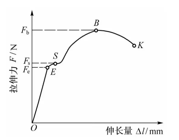 當拉伸力增大到Fs時,曲線上出現水平(或鋸齒形)線段,即表示拉伸力不增加,試樣卻繼續伸長,稱此現象為“屈服”。