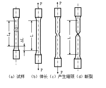 此后,試樣的變形局限在縮頸部分,承受的拉伸力迅速減小,直至拉斷試樣(曲線K點)。