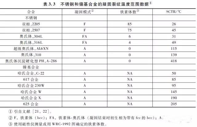 如表3.3中所列,625鎳基填充金屬的凝固裂紋溫度范圍是205℃這個數量級。這表明,該合金對凝固裂紋具有相對高的敏感性。可是,因625鎳基填充金屬具有良好的凝固裂紋抗力而經常被選用,這似乎是和其高的凝固裂紋溫度范圍相矛盾。這種矛盾的確和確定SCTR的方式有關,即使用橫向可變拘束試驗時,施加的應變量相對較高。這種高的應變迫使凝固裂紋沿著整個凝固范圍擴展。在較低應變下,出現的共晶液相可實現裂紋的愈合,這樣,625鎳基填充金屬就具有一定的抗凝固裂紋的能力。實際應用中,當焊縫拘束度水平高,或在不良的焊道形狀條件下(即大的深/寬比,或呈下凹的焊道形狀),均發現這種填充金屬對凝固裂紋敏感。