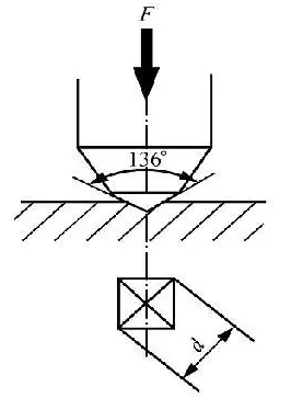 維氏硬度測量原理與布氏硬度相似。采用相對面夾角為136°金剛石正四棱錐壓頭,以規定的試驗力F壓入材料的表面,保持規定時間后卸除試驗力,用正四棱錐壓痕單位表面積上所受的平均壓力表示硬度值,標記符號為HV。