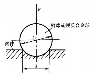 用直徑D的淬火鋼球或硬質合金球作壓頭,以相應的試驗力F壓入試件表面,經規定的保持時間后,卸除試驗力,得到一直徑為d的壓痕。用試驗力除以壓痕表面積,所得值即為布氏硬度值,符號用HBS或HBW表示。