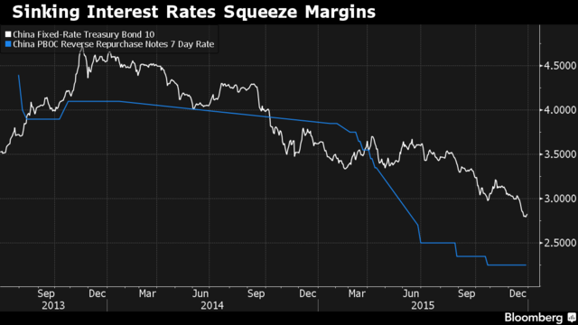 由于央行降低利率,銀行業(yè)的存貸息差正在放緩。此外,來自互聯(lián)網(wǎng)金融的競(jìng)爭(zhēng)也將拉低銀行業(yè)的利潤(rùn)空間。