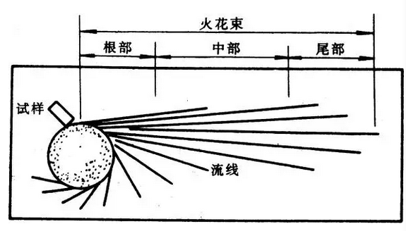 鋼鐵在砂輪上磨削時產生的火花由根部火花,中部火花和尾部火花構成火花束。高溫磨削顆粒形成的線條狀軌跡稱為流線。