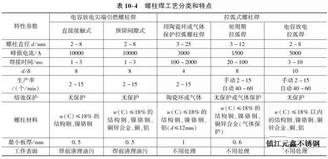 表10⁃4 給出了各種螺柱焊工藝的特點和應用范圍, 在工藝方法的選擇中可以參考。